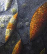 Après le foisonnement des investigations picturales de la série "Carrés de jardins", elle raréfie la matière de son écriture à une forme visuelle simple s'apparentant à une mandorle. Il ne s'agit, chez elle d'aucun effet de style mais du résultat d'un long travail de simplification de la forme sans qu'y soit apparu la moindre sécheresse d'expression. C'est une nouvelle et passionnante aventure artistique qu'elle nous propose aujourd'hui.